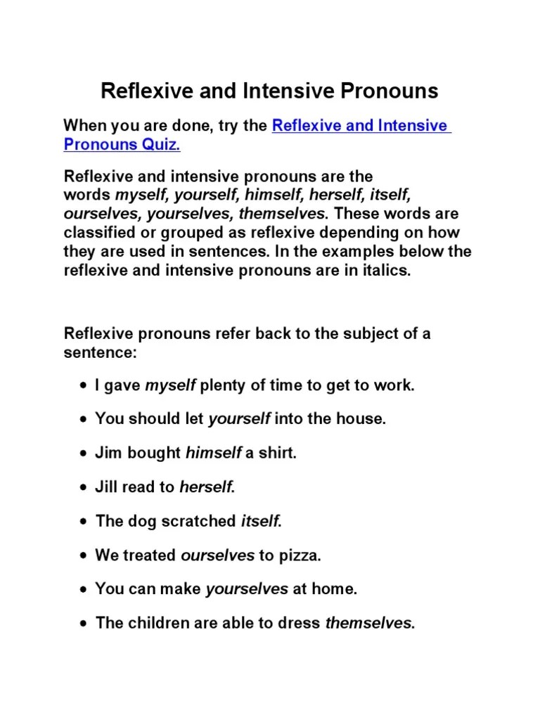 Reflexive And Intensive Pronouns Worksheets With Answers / Reflexive And Emphatic Pronouns School Lead :